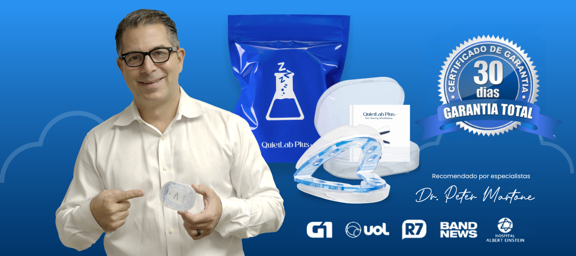 O QuietLab Plus é um aparelho bucal ultrafino desenvolvido por um renomado ortodontista italiano que você coloca na boca antes de dormir.